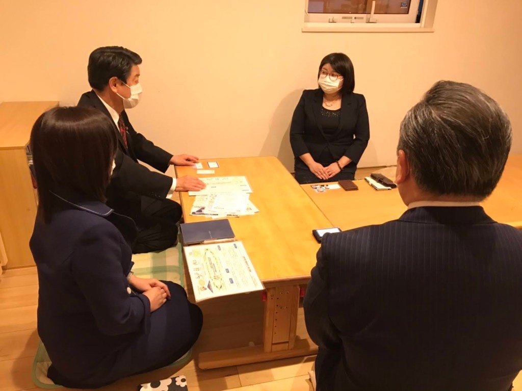 - 2021年札幌市子ども未来局 子ども育成部子どものくらし支援担当課課長と係長が理事長(当時)五嶋耀祥自宅(ハッピー・ファム合同会社本社)へ来場、代表坂本千春と共に、札幌市子どもの見守り強化事業についての説明と課題等ヒアリングに協力